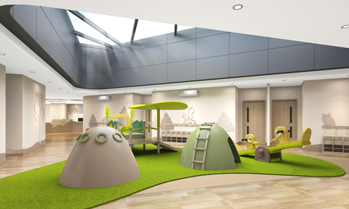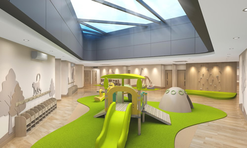 Bright and spacious indoor playground with excellent equipment to develop children's gross motor skills.