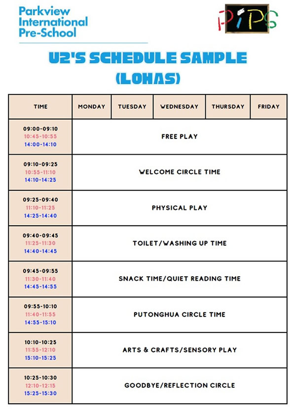 | 1 ½ hrs Programme (Recommended for 12 to 24 months) |